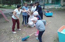 СЕГОДНЯ, ВО ВРЕМЯ ПРОГУЛКИ, ВОСПИТАТЕЛИ СОВМЕСТНО В ДЕТЬМИ ВЗЯЛИСЬ ЗА УБОРКУ СВОИХ УЧАСТКОВ ОТ СЛУЧАЙНОГО МУСОРА. ДРУЖНО И С УДОВОЛЬСТВИЕМ МАЛЬЧИКИ И ДЕВОЧКИ УБИРАЛИ УПАВШИЕ ВЕТКИ, ПОДМЕТАЛИ ДОРОЖКИ. И КАК ПРИЯТНО - БЫТЬ ПРИЧАСТНЫМ К ТОМУ, ЧТО ВОКРУГ ЧИСТО И КРАСИВО!