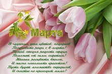 Сердечно поздравляем вас с самым красивым и светлым весенним праздником - днем 8 Марта!Природа наделила женщин несравненной красотой и неиссякаемой энергией, душевной нежностью и беззаветной преданностью, жизненной мудростью и удивительным терпением.