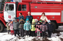 18 марта воспитатель старшей группы МБДОУ «Колокольчик» Макурина Е.В. организовала для ребят экскурсию в ПЧ-41. Такие экскурсии необходимы для того чтобы, дети понимали общественную значимость труда. Ведь каждая профессия требует определенных знаний и умений. Ребята увидали современную, специальную технику, которая облегчает труд. Спецодежда пожарных защищает человека при тушении пожара. Сотрудники МЧС рассказали о правилах поведения при пожаре, и правилах пожарной безопасности. Слаженность всех членов пожарного расчета говорит о том, что тут работают смелые и отважные люди. В детском саду воспитатель провела учение «Тревога, дым! Собираемся! Не теряемся! И с запасного выхода спускаемся!» Все успешно справились с поставленной задачей.