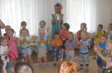 Вчера наш детский сад посетили два веселых клоуна Чупа и Чупс, которые подарили много улыбок и смеха нашим ребятам. Они вместе с воспитанниками соревновались в ловкости, быстроте и меткости. Дети прявили себя не только в спортивных эстафетах, но и показали свои знания, отгадывали загадки, пели песни, играли в различные игры. Встреча с клоунами закончилась заводными танцами.
