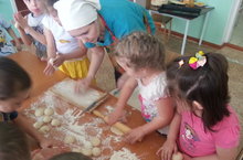 3 февраля 2015г. в средней группе повар Надежда Расимовна показала мастер-класс «Булочки – бантики». Сначала она рассказала, а затем показала весь процесс изготовления теста для булочек. Раскатала кусочек теста, смазала растительным маслом, посыпала сахарным песком. Надежда Расимовна как волшебница, превратила тесто в красивый бантик. Ребята были в восторге. Наш любимый повар раздала всем детям шарики теста, и они начали раскатывать тесто скалочкой и лепить красивые бантики. Все ребята очень старались. Вылепленные булочки положили на противень, и Надежда Расимовна унесла их в пищевой блок, где испекла в жарочном шкафу. Вкусный запах булочек веял по всему детскому саду. В обед ребятки с большим удовольствием пили чай с булочками – бантиками. Ведь еда, приготовленная своими руками вдвойне вкуснее!