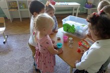 Для детей младшего дошкольного возраста экспериментирование, наравне с игрой является ведущим видом деятельности. Восприятие мира ребенком в этот период жизни идет через чувства и ощущения. Если ребенка в раннем возрасте не научить обследовательским действиям, умению наблюдать, то в дальнейшем он не всегда проявляет устойчивый интерес к деятельности, испытывает чувство страха при ознакомлении с новым предметом. Экспериментирование открывает широкие возможности для познавательного развития детей. Для того, чтобы заинтересовать детей, пробудить в них творческую активность, воспитатель первой младшей группы провела совместно с детьми опыт «Растворение веществ в воде». Для опыта взяли кусочек сахара, стакан воды и все размешали. Дети с интересом наблюдали за действиями и сделали вывод что, вода льется, прозрачная, без запаха.