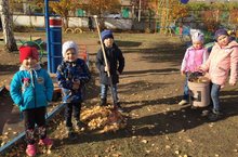 Трудовое воспитание дошкольников является одной из важнейших сторон воспитания подрастающего поколения. В детском саду трудовое воспитание заключается в ознакомлении детей с трудом взрослых, в приобщении детей к доступной им трудовой деятельности. В процессе ознакомления с трудом взрослых у детей формируется положительное отношение к их труду, к его результатам, стремление оказывать взрослым свою помощь. Так и ребята старшей группы, с большим удовольствием помогают воспитателям со сбором листьев на участке. Таким образом, труд удовлетворяет потребность детей в самоутверждении, в познании собственных возможностей.