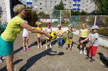 Необычное задание приготовила педагог старшей группы, для своих воспитанников организовав на прогулке игру "Мяч бросай летние слова называй". Воспитатель преследовала цель закрепить прием подбрасывания, ловле мяча и расширении словарного запаса. В эту игру ребята играли весь день, самостоятельно усложнив ее тем, что в ходе игры вели учет кто и сколько придумал слов о лете, кто ни разу не уронил мяч. Конечно же были победители, которых наградили открытками.