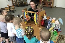 Театр - это всегда праздник. С ним связаны радость, веселье, яркие впечатления, новые чувства. И как интересно быть не только зрителем, но и участником спектакля! С целью научить ребенка играть, брать на себя роль и действовать, вместе с тем помогая ему приобретать жизненный опыт, воспитатель Сиражиева В.И. познакомила детей первой группы раннего возраста с театром, театральными куклами, с видами театра: пальчиковый, кукольный. Каждый ребенок с большим удовольствием играл с театральными куклами. Театрализация обогащает эмоциональную сферу ребёнка, развивает его творческие способности. Занимаясь с детьми театром, воспитатель делает жизнь своих воспитанников интересной и содержательной, наполняет ее яркими впечатлениями, интересными делами, радостью творчества. Воспитатель стремимся к тому, чтобы навыки, полученные в театрализованных играх, дети могли и использовать в повседневной жизни.