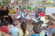 Не человек, а рассказывает» . (Книга)Оказалось, что гость - это сотрудник библиотеки и мама одной из воспитанниц, А.Н.Габдуллина. Она предложила детям поговорить о книгах. Воспитатель рассказал детям, о чем пишут в книгах (о сказках, о природе, стихи, рассказы, различные истории и выдумки), чем сказка отличается от рассказа, чем от сказок отличаются стихи, кто пишет сказки; кто стихи. Воспитанники младшей группы пришли в восторг, когда гости подарили каждому из них по книге. Ребята были очень удивлены тому, сколько интересного можно теперь узнать! Побывать в путешествии, попасть в сказочную страну, полетать на ракете и оказаться в сказке вместе с любимыми героями. Гости рассказали детям, что у книги есть обложка и страницы; есть рисунки, которые называются иллюстрациями, а так же о том, что книги бывают разной величины. В конце встречи дети получили приглашение на экскурсию в центральную библиотеку.