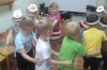 В осеннюю пору сбора урожая дети старшей группы вместе с воспитателем по обучению татарскому языку разучивают хороводную игру "Бар матур бакча". Ребята одевают полумаски овощей, танцуют и поют. Они только выучили названия овощей на татарском языке, а эта игра помогает закрепить пройденную тему. Дети играют в эту хороводную игру с большим удовольствием.