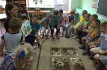 Знакомство малыша с детским садом - яркое, важное событие в его жизни, ознаменованное значительными переменами: увеличивается круг его общения; он входит в новую систему отношений; появляются непривычные обязанности и правила. Для поступивших в детский сад малышей меняются условия жизни. Ко всему этому ребенку надо приспособиться. А процесс приспособления не всегда проходит легко и быстро. В период адаптации для каждого малыша устанавливается режим. Режим дня способствует переходу от одного вида деятельности к другому, создает благоприятные условия для развития малыша. В организации и проведении режимных моментов в первой группе раннего возраста "Муравьишки" воспитатель Сиражиева В.И. использует игры - потешки. Малыши очень любят "Ладушки", "Пирожки". С большим удовольствием повторяют за воспитателем слова потешек "Петушок, петушок…", "Веселые матрешки"; при умывании: "Водичка-водичка", что позволяет малышам быстрее адаптироваться в новых условиях.