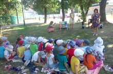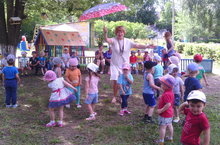 В середине августа, в нашем детском саду прошло летнее развлечение "Лето красное - прекрасное". Ребята всех групп с удовольствием пришли на праздничную площадку, рассказывали стихи о лете, о цветах, отгадывали загадки о насекомых. Дети играли в подвижные игры, провели летние эстафеты. Завершился праздник летним хороводом под песню "По малину в сад пойдем".