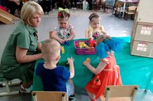 Сегодня воспитанники первой младшей группы со своим воспитателем Мартыновой Н.Р. помогали героям сказки «Волк и семеро козлят» спастись от злого, сердитого волка. Для этого ребятам понадобился конструктор - лего, чтобы построить заборчик. Малыши быстро принялись за работу, каждый выбрал себе детали определенного цвета. На вопрос воспитателя, какого цвета у тебя строительный материал, малыши уверенно называли основные цвета (красный, желтый, синий, зеленый) при этом ловко собирая детали конструктора. Заборчик получился прочный и красивый. Герои сказки поблагодарили малышей за заботу и подарили им воздушный шарик. Малыши были в восторге от подарка, но не забыли напомнить козлятам, впредь быть очень осторожными и внимательными. Так на сказочных примерах педагог развивает интерес у малышей к конструктивной деятельности.