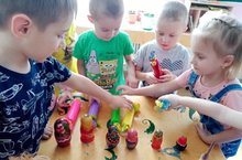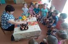 Сегодня дети 2 младшей группы совместно с воспитателем Григорьевой В.Б. продолжили учиться сравнивать две неравные группы предметов способами наложения и приложения. Обозначали результаты сравнения словами: больше - меньше, столько-сколько, поровну. Угощали матрёшек конфетами, сколько матрёшек, столько конфет, на одного больше - меньше. Читали стишок «Мишка косолапый…», играли в подвижную игру «Найди такую же фигуру». Дети с удовольствием поиграли.