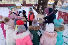 В старшей группе прошла акция «Покормите птиц!». Наши дети знают, что птицам трудно себя прокормить, когда стоят большие сугробы. Что больше всего птицы боятся голода, а не холода. Каждый ребенок принес угощение пернатым друзьям. Ребята решили, что кормушки у птиц всегда будут заполнены угощением, так как птицы наши помощники и друзья!