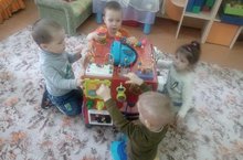 Воспитатели совместно с родителями создали уникальный «бизикуб» по сенсорному развитию, с которым дети с большим удовольствием играют. Увлеченно играя с ним, наши малыши развивают сенсорику, моторику, тактильные ощущения. А главное – понимают, для чего нужны замки, шестерёнки, пуговицы, шнурки и как правильно ими пользоваться. Отдельные элементы помогают малышам усвоить правила безопасности.