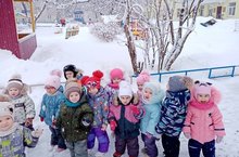 Дети 1 младшей группы вместе с воспитателем Григорьевой В.Б. наблюдали за снегом. Любовались спокойно падающими снежинками, с высоко поднятыми ножками проходили через сугробы. Рассматривали снежинки, узнали, почему она тает на ладошке. Катались на санках, сгребали снег для снежных построек. Играли в любимые подвижные игры «Лиса и зайцы», «Попади в цель». Дети хорошо погуляли, отдохнули от души!