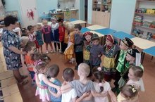 В средней группе Демахина В. М. провела беседу на тему «Ты, я, он, она – вместе дружная страна!». Дети, подготовительной группы, одетые в национальные костюмы, пришли в гости к воспитанникам средней группы. Воспитанники узнали, что живут на нашей большой планете люди разных национальностей. Воспитатель объяснила, что нужно уважать всех людей, дружить со всеми, жить в единой большой семье в мире и согласии. Не допускать оскорблений, унижений по отношению к людям других национальностей.