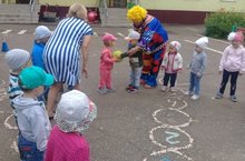 Сегодня в детском саду “Солнышко” прошло мероприятие “В мире юмора и смеха”. Весёлая музыка созывала детей на праздник. Дети играли в хороводные игры, выполняли различные танцевальные движения. Но какой же праздник может обходиться без весёлого, озорного клоуна Клёпы! Дети с радостью встретили его громкими аплодисментами. Клоун Клёпа принёс с собой весёлые игры, проводил различные соревнования, эстафеты. Праздник прошел на ура!