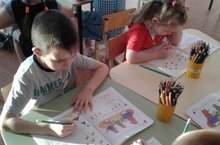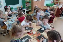 Сегодня воспитанники второй младшей группы на занятии по ИЗО пробовали рисовать Снеговика. С воспитателем Тугашевой Г.Х. они предварительно рассмотрели иллюстрации снеговика, обсудили из чего он состоит, каким он бывает и какую имеет форму. Дети упражнялись в рисовании круглых комочков различной величины и располагали их на листе бумаги в правильной последовательности. Все дети справились с заданием.