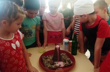 В подготовительной к школе группе воспитатель Тугашева Г.Х. провела экспериментально – исследовательскую работу по теме: «Извержение вулкана». В течение недели мы с воспитанниками познакомились с природным явлением – извержением вулкана, его причиной. Подробно изучили его строение и форму, посмотрели учебные фильмы о вулканах. Изготовили макет вулкана. И в завершении провели опыт. Экспериментально-исследовательская деятельность получилась очень интересная и позновательная.