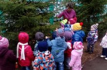 На прогулке Демахина В. М. провела беседу с малышами о елочке, о том, что зеленая красавица скоро придет к нам на праздник - Новый год. Дети с удовольствием рассматривали еловые веточки, слушали рассказ воспитателя. Малыши решили, что на Новый год, елочки подарят им новогодние игрушки. Малыши поняли, что нельзя ломать ветки, рвать еловые шишки, а надо ждать ёлочку на праздник.