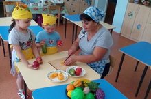 Балалар бакчасында балаларның сәламәтлеге турында кайгырту безнең төп бурычыбыз. Вакытында саф һавада булу, дөрес туклануга аеруча зур игътибар бирәбез. Төрле уеннар, әңгәмәләр үткәрәбез. Бүген 5 нче сентябрь уртанчылар төркемендә тәрбияче Мингазова Г.Н., сәламәт яшәү рәвешен күздә тотып, җиләк-җимешләрнең бала организмында нинди файдасы булуын өйрәнделәр һәм яшелчәләрдән ясалган салаттан авыз иттеләр. Балаларга аеруча бергә ясаган салат хуш килде.
