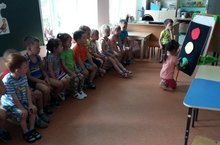 5 июль көнне өлкәннәр төркемендә “Күңелле светофор” дигән темага әңгәмә үтте. Әңгәмә барышында балалар светофор турында табышмак, шигырь тыңладылар.Кечкенә күләмдәге әкият тыңлап, светофорның ни өчен кирәклеген аңладылар. Әңгәмә азагында һәр бала светофор рәсемен төшерде.