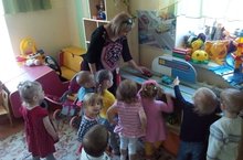 26 июня библиотекари из центральной городской библиотеки провели беседу на тему «Кто такой библиотекарь?» с детьми второй младшей группы. Они ознакомили детей со своей профессией. Рассказали много интересного о профессии библиотекаря. Организовали для детей мини-выставку книжек. Объяснили детям, как надо обращаться с книгами. Также показали детям обучающую презентацию о профессии библиотекаря, о том, что делает библиотекарь на рабочем месте. Итогом беседы стал просмотр мультфильма о мальчике Грише, который не умел обращаться с книгами. Детям очень понравилось беседовать, они с интересом слушали гостей и смотрели мультфильм.