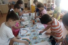 Экспериментирование, изобразительную и игровую деятельность использовала Тугашева Г.Х. во время развлечения под названием «Радуга-дуга», которое она провела с воспитанниками старшей и подготовительной групп. Дети разгадали ребусы, рассказали об особенностях радуги, проделали опыты в свободной форме (с помощью воды, подсолнечного масла и жидких красок). И в конце воспитанники самостоятельно изобразили радугу, применив нетрадиционную технику рисования.