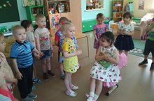Тәрбияче Григорьева В.Б. беренче кече яшьтәге балалар белән «Әтәч һәм аның гаиләсе» дигән уен-шөгыль күрсәтте. Балалар хайваннарның хәрәкәт итү : туклану (чукый,су эчә), тавыш бирү( пи-пи-пи, ко-ко-ко,һ.б), ысулларын аңлау сәләтен үстерделәр, белү күнекмәләрен ныгыттылар. Сүзләр запасын киңәйтү һәм баету өстендә эшне дәвам иттеләр. Тәрбияче балаларда сөйләм аша аралашу ихтыяҗын үстерүгә булышлык итте, аларга өлкәннәр һәм яшьтәшләренә мөрәҗәгать итү очракларын күрсәтте ( кем килгән икән, кара да, безгә әйт һ.б.).Уен-шөгыль балаларга бик кызыклы һәм эчтәлекле үтте.