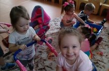 Любят наши девочки играть в сюжетно - ролевые игры. Вот сейчас они играют в дочки-матери. Подружки укладывают свою «дочку» спать. Игрушки, атрибуты для игры выбирают самостоятельно. С большим удовольствием играют вместе, дружно. Хотя ещё мы малыши, но играем от души. Для развития и воспитания детей в группе созданы все условия.