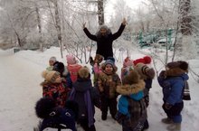 Ясле төркеме балалары белән кыш турында әңгәмә үткәрелде. Кыш көне кар яуганын , кар бөртекләре җиргә , бияләйләргә, җиңнәргә кунуы турында күзәтелде. Кар бөртекләренең кечкенә, салкын икәне аңлатылды. Әңгәмә Әхмәт Ерикәйнең шигыре белән тәмамланды: