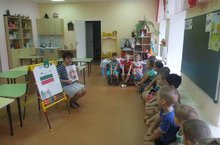 2 ноябрь көнне тәрбияче Юнусова Л.Ф. өлкәннәр төркемендә үзенчәлекле шөгыль үткәрде. Балаларны Татарстан флагы һәм гербы белән таныштырды. Флагның төсләре , гербта нәрсә сүрәтләнүе турында сөйләп үтте. Шөгыль балаларда зур кызыксыну уятты . Магнитофон язмасында Татарстан гимнын тыңлау балаларда республикабыз белән горурлану хисе тудырды.