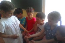 Тәрбияче Валеева Т.В. табигый материаллар, макет, картиналар кулланып балалар белән витаминнар турында кызыклы һәм файдалы әңгәмә корды. Р. Миңнуллинның “Витаминнар”дигән шигыре аша балаларның витаминнар турында белемнәрен баетты, исемнәрен ныгытты. Соңыннан балалар рәсемнәрдә витаминнарның кайда үсүләрен ясап күрсәтте.