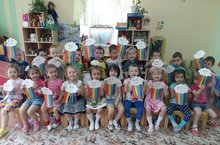 25 апреля 2017 года дети 2 младшей группы совместно с воспитателем Агзамовой Г.Х. изготовили аппликацию в виде композиции “Тучка с радугой”. Дети познакомились с голубым цветом.