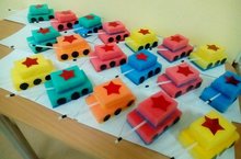 20 февраля воспитатель Самигуллина В.Р. с воспитанниками подготовительной «Б» группы изготовили танк “Добрый” из губки для мытья посуды к “23 февраля”. Поделки получились яркими и разноцветными.