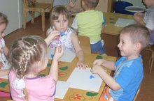 Воспитатель Тугашева Г.Х 04.02.2016г. провела занятие по рисованию в средней, старшей "А" и подготовительной группах. Тема занятия- "Зимний пейзаж", где мы использовали нетрадиционную технику. Необычные материалы и оригинальные техники привлекают детей тем, что здесь не присутствует слово "нельзя". В данном случае, мы с детьми применили листья пекинской капусты. Способ получения изображения: дети покрывали лист капусты белой гуашью, затем прикладывали его окрашенной стороной к бумаге для получения отпечатка. Получается изображение дерева, покрытого инеем. Дети были в восторге и получили массу впечатлений!