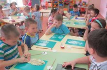 С детьми средней группы воспитатель Тугашева Г.Х. проведела беседу на тему: "Кто такие защитники Отечества?" .Этот праздник воспитывает в детях чувство патриотизма, уважение к воинам. Затем была проделана творческая работа детей по изготовлению подарков для пап и дедушек - "Праздничная рубашка" (аппликация). Они потрудились на славу и работы получились яркими и творческими.