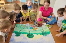"Юный защитник природы" так называлась экологическая викторина, которая была проведена с детьми старшей группы. Команды "Эколята" и "Дошколята" соревновались между собой в знаниях о природе и окружающей среде. Поочереди дети отгадывали загадки, выполняли задания, а также вместе с болельщиками посоревновались в эстафете "Опасные отходы". Ребята ещё раз закрепили свои знания и узнали для себя что то новое. Подсчитав фишки оказалось, обе команды набрали равное количество фишек и победила дружба!