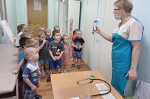 Экскурсия в детском саду – это увлекательное мероприятие, которое «на ура» воспринимается детьми. С одной стороны, они имеют безусловную познавательную ценность, с другой – это возможность сменить обстановку, получить новые захватывающие впечатления. Благодаря своей наглядности, доходчивости, эмоциональности экскурсия является чрезвычайно эффективной формой передачи знаний детям, способствует прочному усвоению приводимых фактов, оказывает сильное воздействие на формирование духовного облика ребенка. Преимущество экскурсий в том, что ни позволяют в естественной обстановке познакомить детей с различными объектами, способствуют развитию наблюдательности, возникновению интереса. Роль экскурсии в детском саду огромна. Воспитатель Зотова Карина Азатовна вместе с детьми второй младшей группы посетили медицинский кабинет с целью познакомить воспитанников с профессиями врача и медицинской сестры. Для начала ребята заметили, что кабинет просторный, уютный, красивый, чистый. Нас приветливо встретила медицинская сестра Кучаева Надежда Васильевна. Она с удовольствием рассказала о своей профессии, почему она выбрала именно эту профессию. Обратила внимание детей на медицинское оборудование. Провела нас в процедурный кабинет и там познакомила с предметами которые нужны в работе, ребята узнали много новых медицинских слов (шприц, вата, весы, лекарство, таблетки, йод, зеленка, грелка, термометр и т.д.). А также медицинская сестра объяснила почему нельзя трогать, играть с медицинскими инструментами, самостоятельно пить лекарства. Желающим измерила температуру градусником, посмотрела горлышко. А в конце экскурсии рекомендовала детям кушать свежие овощи и фрукты.