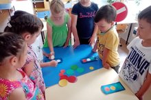 Дети старшей группы еще раз показали свои знания, умения и навыки по правилам дорожного движения. Были проведены игры: "Собери светофор", "Найди нужный знак", "Разложи транспорт по видам", "Со светофором я дружу и правильно дорогу перейду".