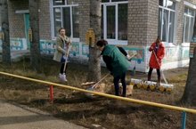 Коллектив детского сада активно убирается с приходом весны. 5 мая более 30 сотрудников приняли участие в субботнике по очистке территории.