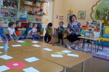 Воспитатель по обучению татарскому языку Зоя Иосифовна организовывает с детьми игры на татарском языке.
