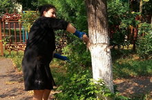 Сотрудники организовали очистку территории детского сада и побелку деревьев в связи с подготовкой к учебному году.
