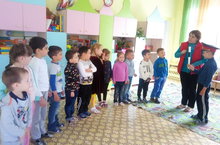 Воспитатель Попова Е.Н. организовала с детьми старшей группы беседу по безопасному поведению на дороге и сюжетную игру "Регулировщик"