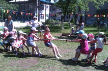 В субботу 18 июня прошло развлечение с воспитанниками детского сада и родителями: “Я, Ты, Он, Она – вместе дружная семья!” Такие совместно взросло-детские соревнования всегда приносят радость детям, крепче сближают семью. Опыт семейного общения на подобных мероприятиях остается надолго у детей в памяти как яркий момент жизни.