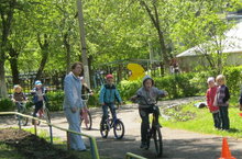 Дети с огромным удовольствием и радостью катались на велосипедах и самокатах. Ловко они проезжали змейкой по дорожке, управляя двухколесными друзьями. А дистанцию вокруг детского сада все преодолели с легкостью.
