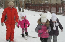 Выпал снег, дети встали на лыжи.В нашем дошкольном учреждении обучение детей ходьбе на лыжах под руководством инструктора по физической культуре Шарафиевой Г.З. ведется со средней группы. Каждое занятие проводится с учетом особенностей физического развития и физической подготовленности детей. Дети с удовольствием занимаются на лыжах.