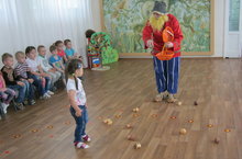 6 июля 2015 г. в средней Б группе был проведен конкурс «В мире загадок» (воспитатель Санникова А.Ю.). Воспитатель рассказала о полезных свойствах овощей и фруктов, что они являются источником здоровья, молодости и красоты. В конкурсе приняли участие 2 команды «Овощи» и «Фрукты». Дети отгадывали загадки, «делили апельсин», «варили компот», «готовили обед». «Овощи» и «Фрукты» зарядили детей бодростью и энергией.