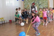 23 июля в детском саду «Светлячок» прошел самый веселый праздник «Морские приключения». Дети старших групп с удовольствием отправились в морское путешествие с пиратом (воспитатель Гилязиева С.Р.). Пират познакомил детей с морским делом. Были конкурсы, игры, сюрпризные моменты Дети с радостью и спортивным духом принимали активное участие во всех проводимых конкурсах, подвижных играх, эстафетах.