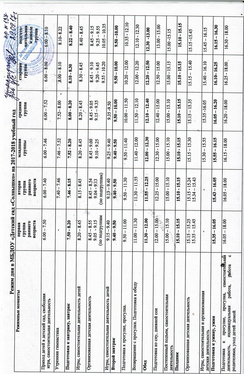 - Режим дня в МБДОУ д/с "Солнышко"на теплый период