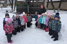 А кто ж в апреле будет рад?А в апреле зиме рады наши малыши, которые с большим удовольствием с воспитателем Тороповой О.А. слепили снеговика.